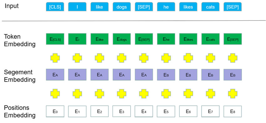 - Segment Embedding : 문장 A와 B를 구분할 수 있는 임베딩