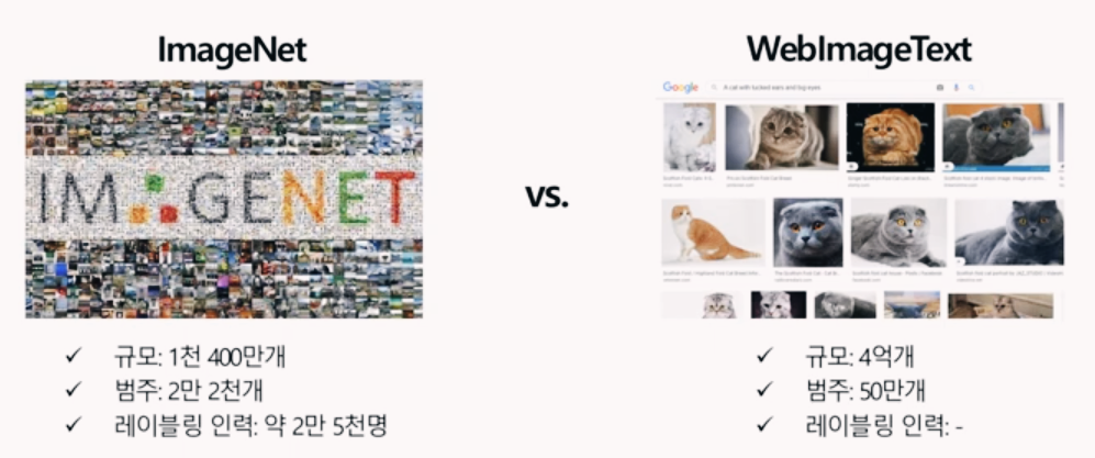 - 반면에, ImageNet 데이터셋은 14M의 이미지인데 25,000명 정도 인력이 쓰였음 (물론 이정도도 굉장히 큰 데이터)