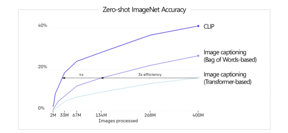 Image-Text Pair를 사용한 Pre-training 기법은 이전부터 존재했습니다. 예를 들어 Image Captioning같은 Task에서 말이죠. OpenAI에서도 Transformer-based 방법과 BOW(Bag of Words)-based 방법을 사용했었는데 이러한 경우에 모델 사이즈가 크며 학습 및 예측 시간이 길어 비효율적이라는 문제점이 존재합니다. 그래서 CLIP에서는 기존의 방식보다 효율적인 Contrastive Learning을 적용해 Pre-training을 진행하였습니다.