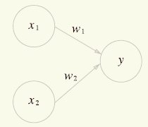 - x1, x2는 입력값, w1, w2는 가중치, y는 출력값이다.