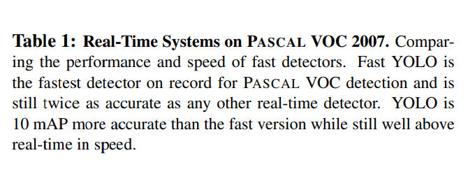 - VOC 2007 데이터셋에서 Fast R-CNN과 YOLO의 성능을 비교 분석