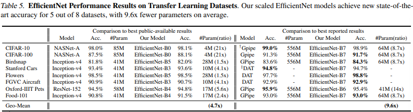 ☑️실험 결과, EfficientNet은 평균적으로 적은 파라미터를 가지고도 더 높은 정확도를 달성했습니다.