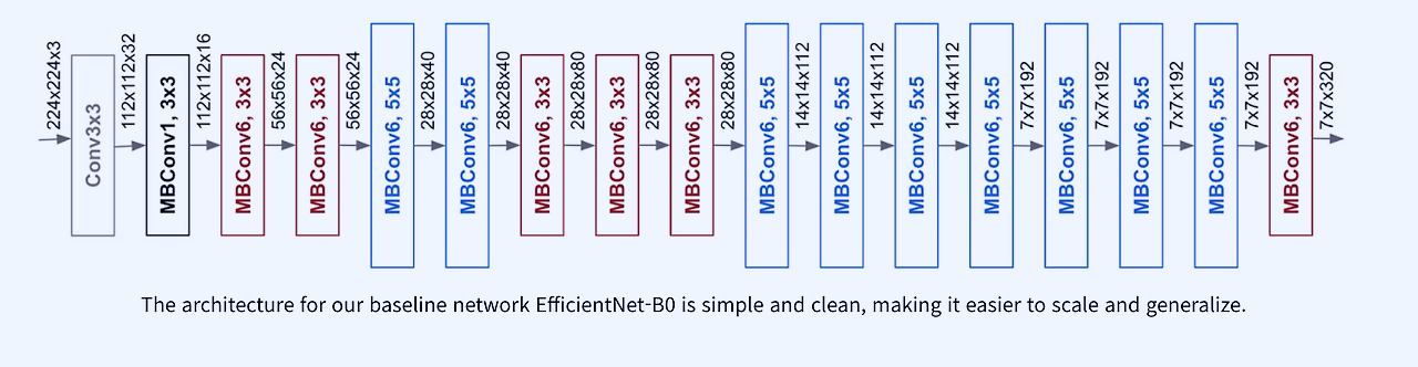 그래서 기존 CNN 모델을 사용해 평가도 하겠지만, 자체적으로 EfficientNet-B0를 개발해 실험했다고 합니다.