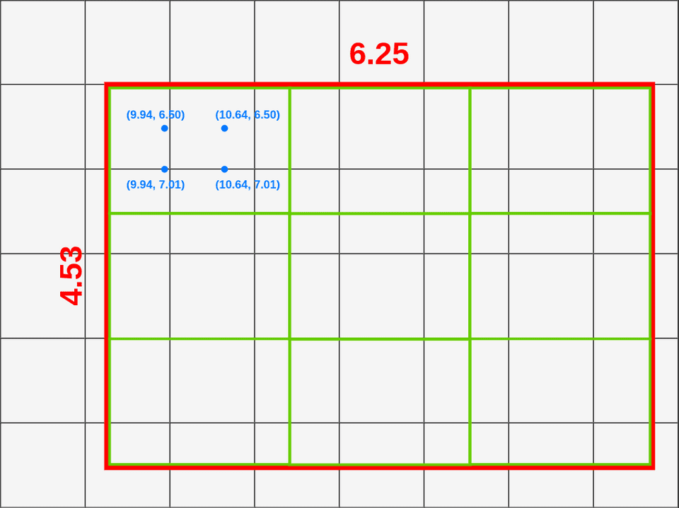 위 예시에서는 3 x 3 Feature Map으로 출력하기 때문에 width, height를 각각 3등분합니다.