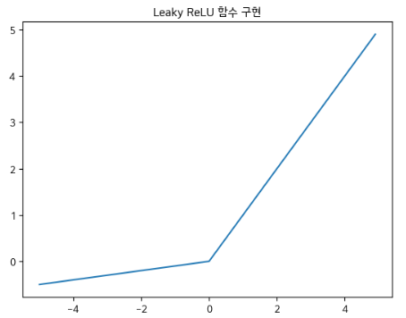 - ReLU함수와 동일하게 입력값이 0을 넘으면 그대로 출력하지만 0이하라면 0으로 출력하는 것이 아니라 일정 가중치를 곱해서 출력합니다.